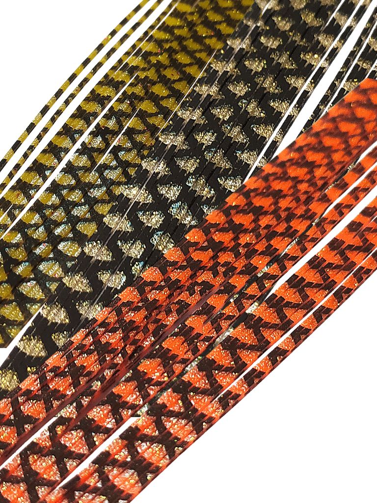 Cada pata tiene un ancho aproximado de 1,5 mm y un espesor de 1 mm, ideales para moscas secas medianas y grandes, pero también perfectamente utilizables en ninfas, streamers y atractores.