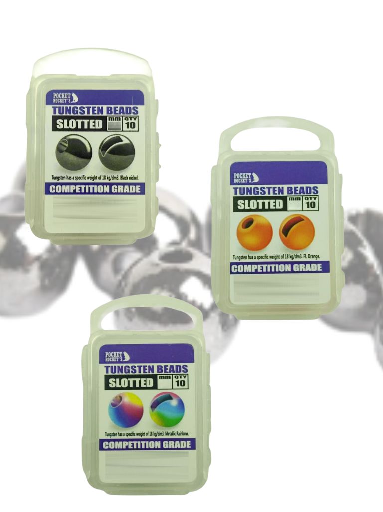 Los beads de tungsteno ranurados están diseñados para aportar hundimiento adicional a tus moscas, optimizando su desempeño en aguas profundas o de corriente rápida. Gracias a su ranura especial, permiten deslizarse y adaptarse a una amplia variedad de anzuelos, incluyendo anzuelos tradicionales, JIG e incluso la posibilidad de fijarlos fuera de eje, logrando así moscas invertidas.