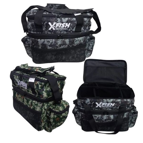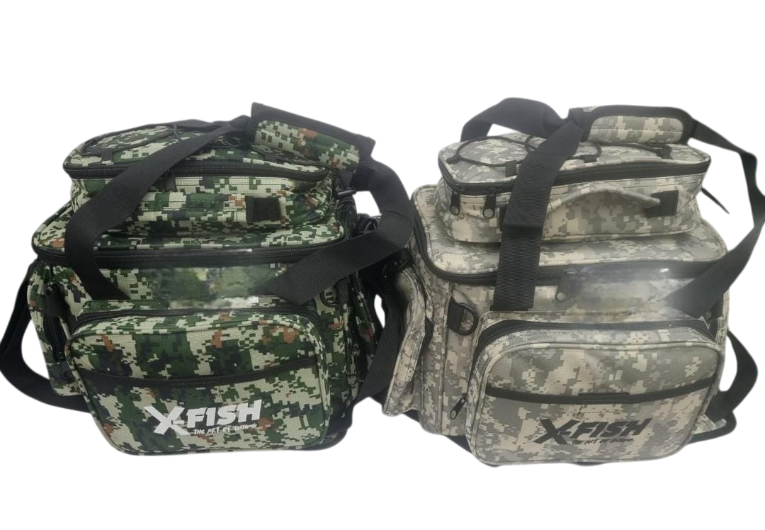 Bolso amplio y funcional, ideal para organizar cajas y reels en salidas de pesca.