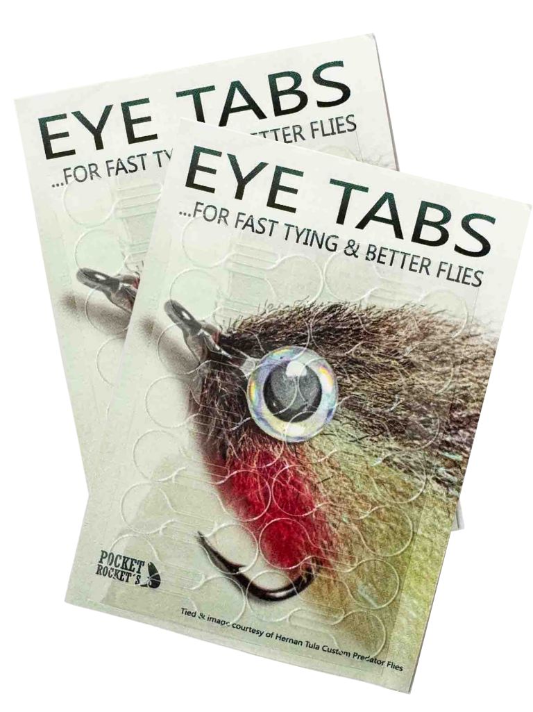 Los Eye Tabs son la solución definitiva para fijar ojos adhesivos de forma rápida, precisa y duradera en tus streamers. Estos soportes invisibles de nueva generación permiten colocar los ojos exactamente donde los necesitás, mejorando notablemente la estética y resistencia de la mosca sin afectar su acción pulsante en el agua.