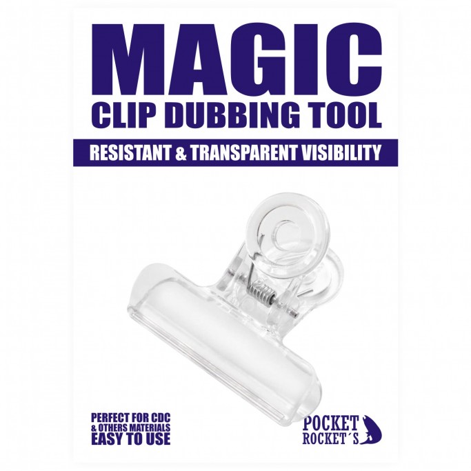 Magic Dubbing Clip Tool: clip transparente de alta calidad para sujetar y manipular todo tipo de materiales. Facilita y agiliza el atado, ideal para principiantes y expertos. Disponible en 25, 35, 45 y 55 mm, en pack individual o kit x4.