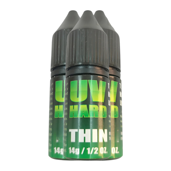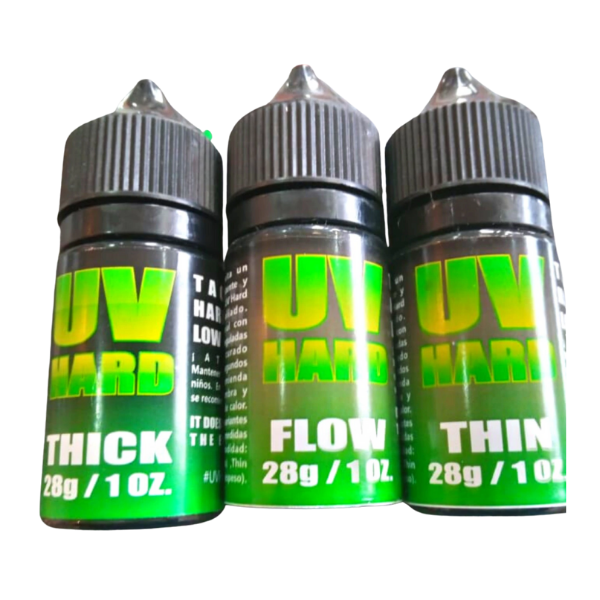 Combo completo de resinas UV Hard para cubrir todas las necesidades de atado. Incluye tres potes de 14 gramos cada uno: