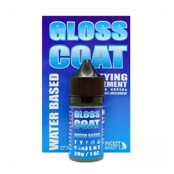 Cemento base acuosa de secado rápido, transparente y de alto brillo, ideal para lograr terminaciones prolijas y duraderas en tus moscas.