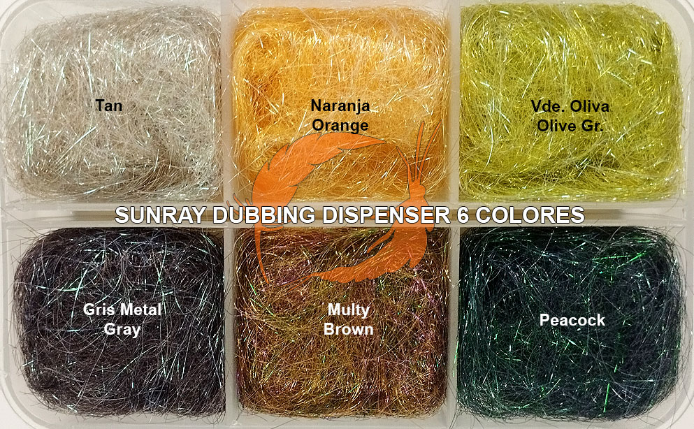 La SUNRAY DUBBING BOX 6 reúne una cuidada selección de dubbings de alto brillo y fibra larga, pensados para el atado de streamers, intruders, wets, emergentes y grandes ninfas.